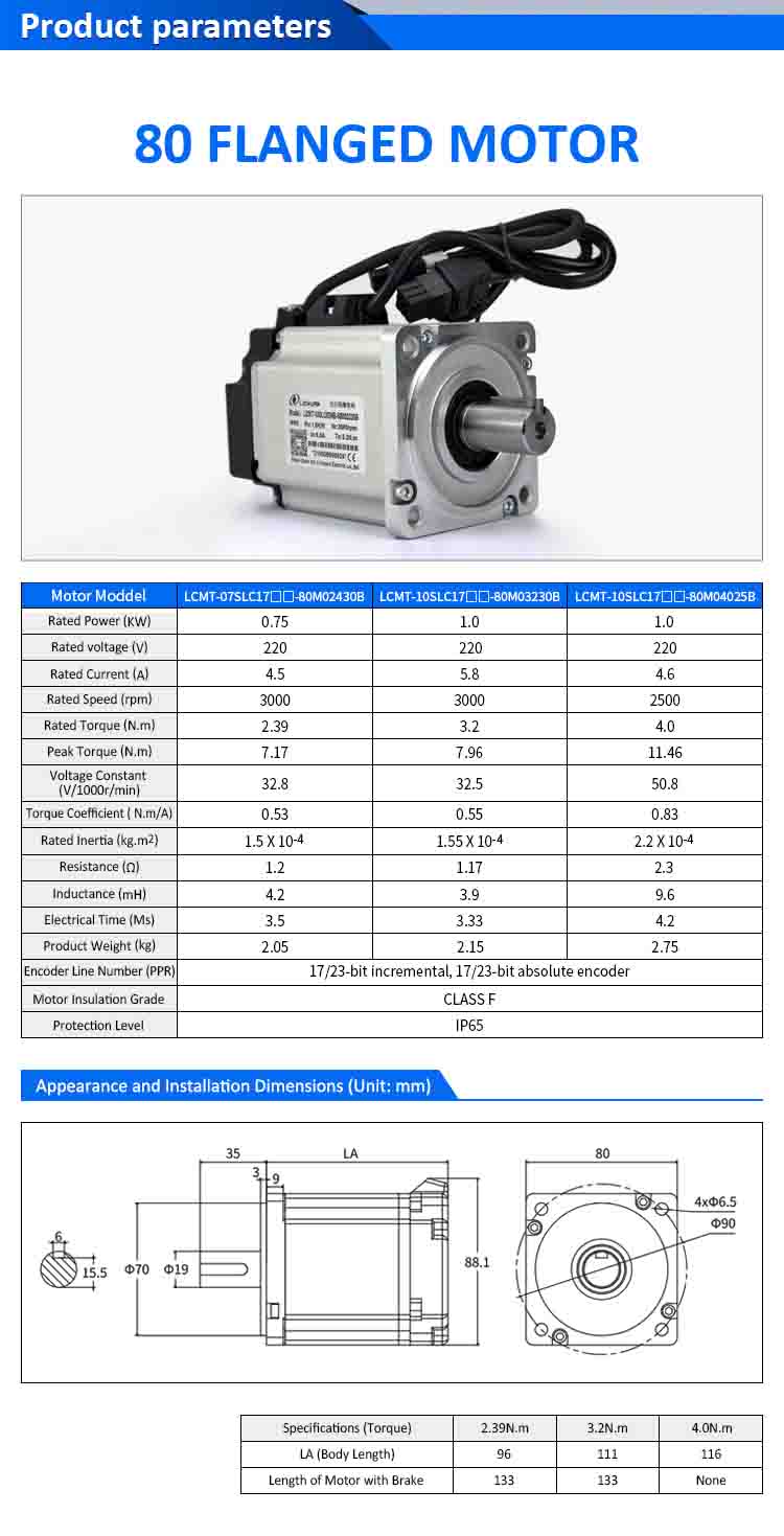 | Modèle de moteur | LCMT-07SLC17-80M02430B | LCMT-10SLC17-80M03230B | LCMT-10SLC17-80M04025B |