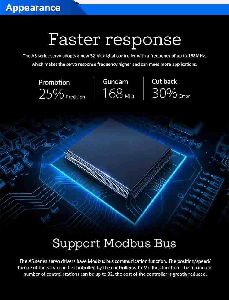 2.Prend en charge 7 modes de contrôle : position, vitesse, couple, position/couple, position/vitesse, vitesse/couple et position/vitesse/couple.