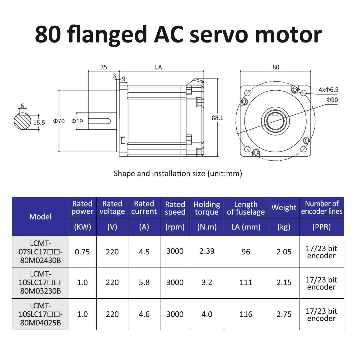 | Modèle de moteur | LCMT-07SLC17-80M02430B | LCMT-10SLC17-80M03230B | LCMT-10SLC17-80M04025B |