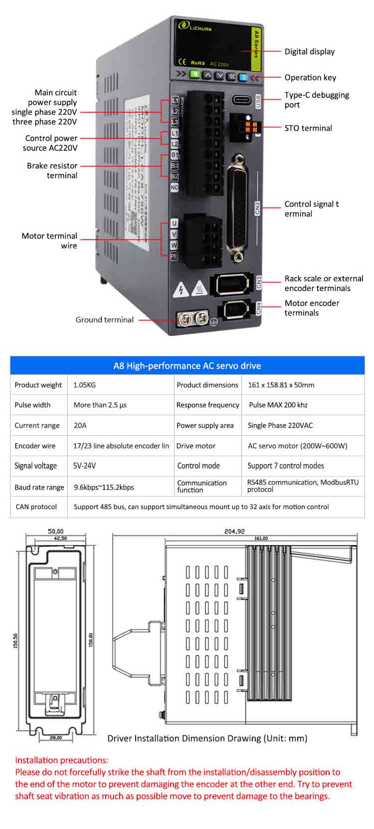 LeKit de pilotes de servomoteur AC STO ABZ Lichuan A8 haute précisionest conçu pourcontrôle de mouvement précis, stable et sûrdans les machines industrielles de petite et moyenne taille.