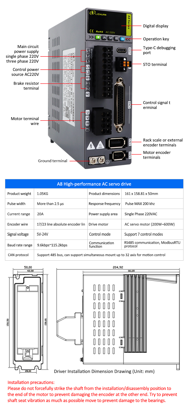 Nouveaux produits Pulse/RS485 200W/400W/600W 2500/3000RPM 17/23 bits Encodeur incrémental/absolu A8 Kit de pilotes de servomoteur AC STO ABZ haute précision fabriqué en Chine avec CE/ROHS de LICHUAN®. Notre usine est un célèbre fabricant et fournisseur de kits de pilotes de servomoteur AC Pulse/RS485 200W/400W/600W 2500/3000RPM A8 haute précision STO ABZ en Chine. Notre produit est de haute qualité/durable/fonctionnement stable et prix bon marché. Et nous fournissons des services personnalisés.